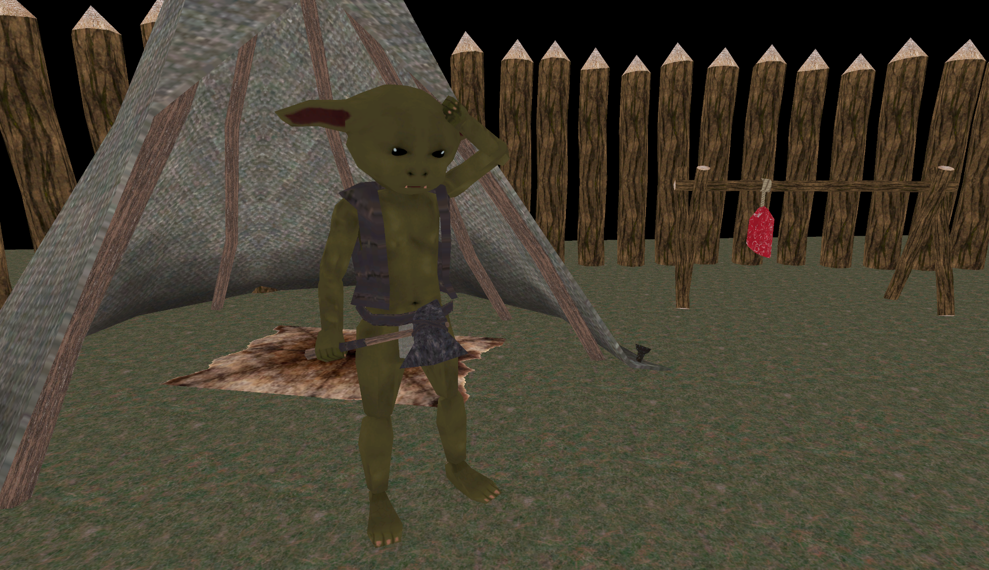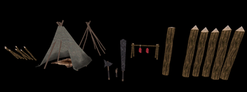 - Goblin Camp props (Tent, racks, walls, pelts, spikes)